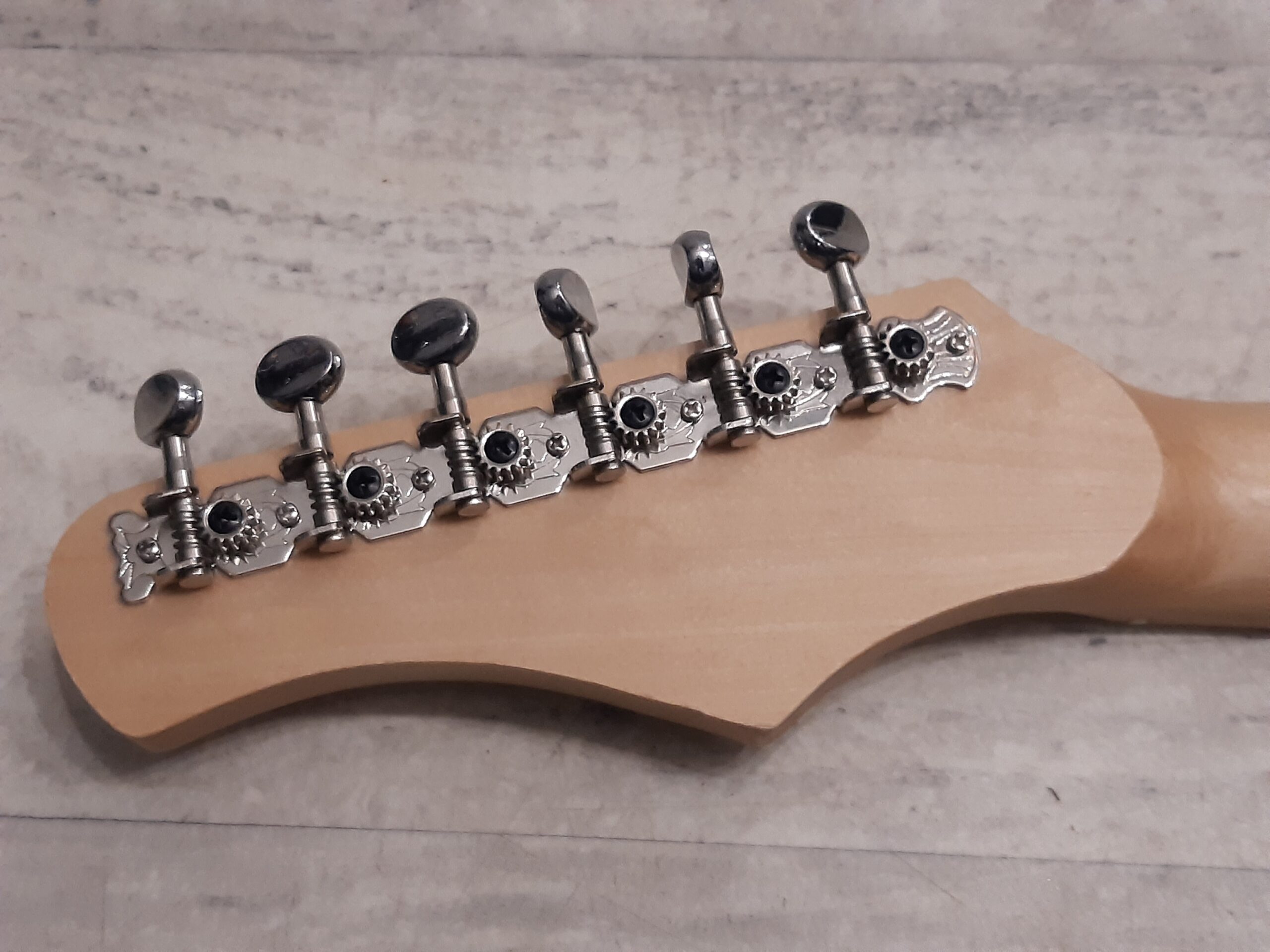 Normalnie stroi , posiada stały mostek z pełną regulacją , metalowe klucze – wszystko jak w większości profesjonalnych gitar !!!