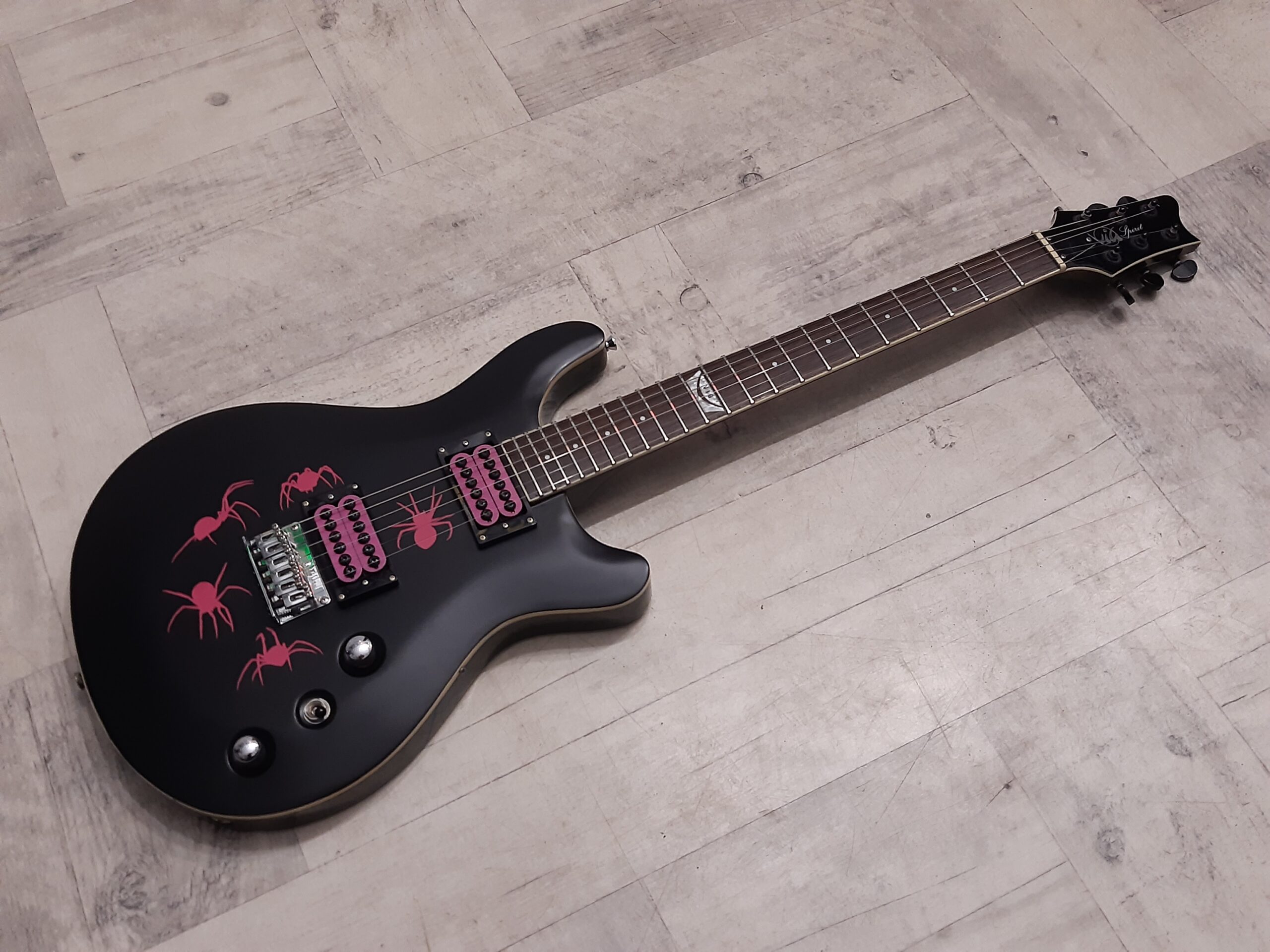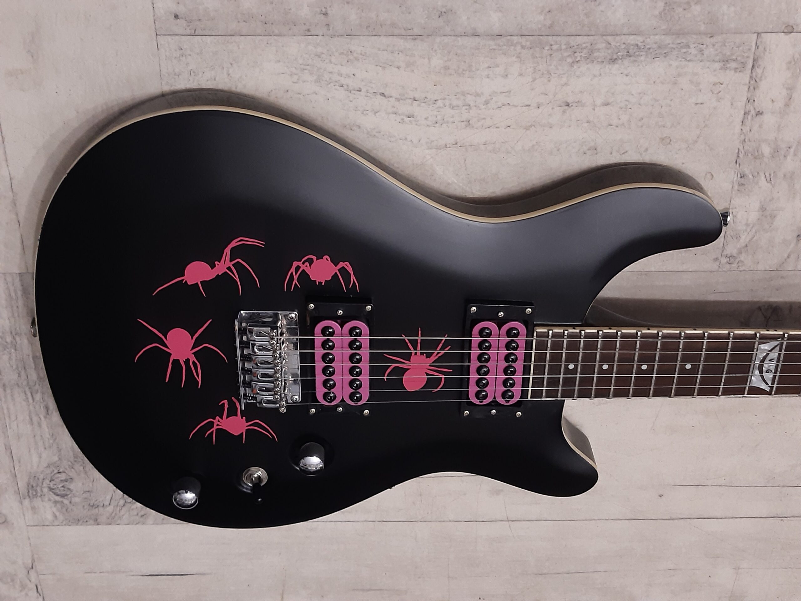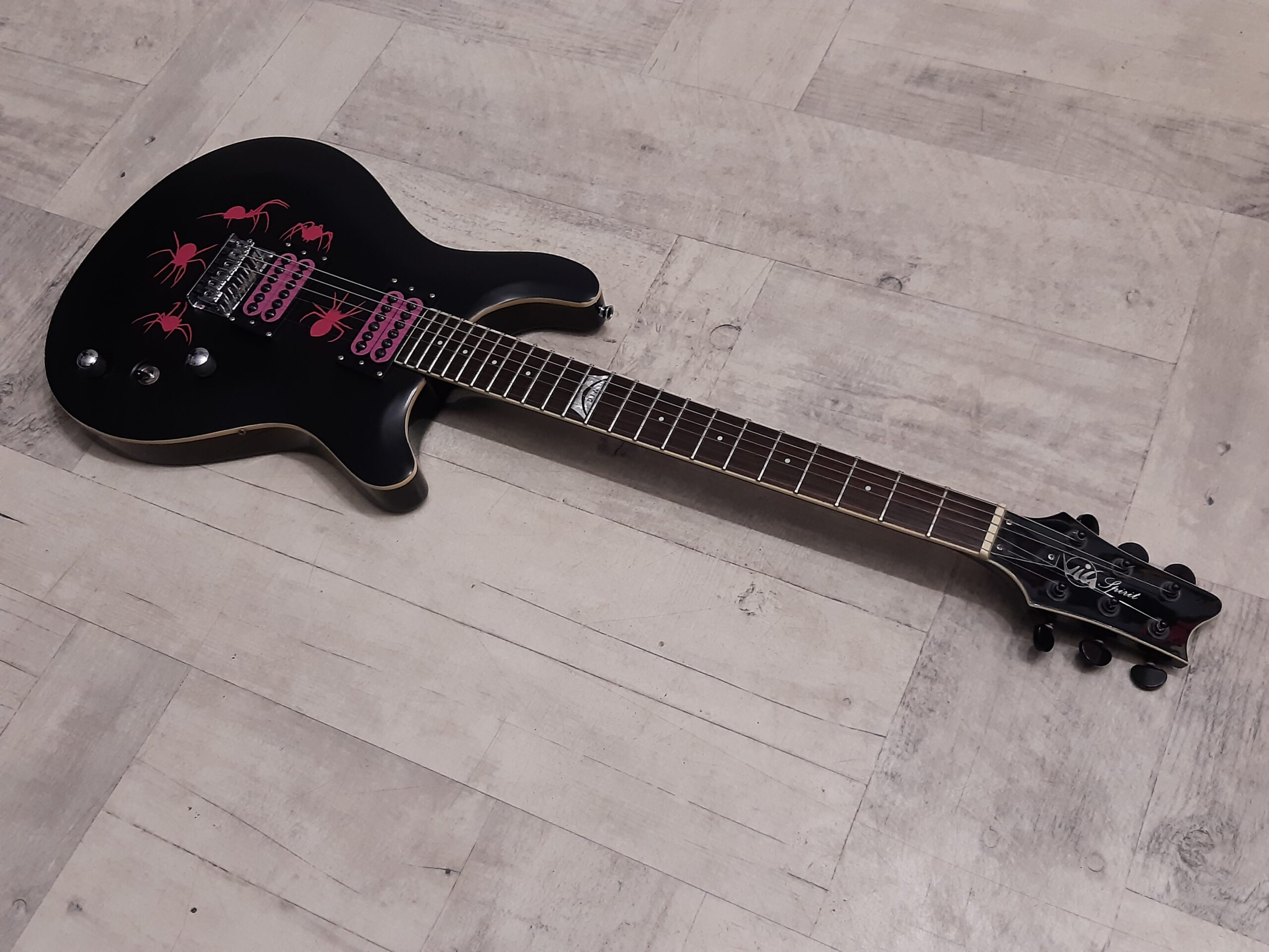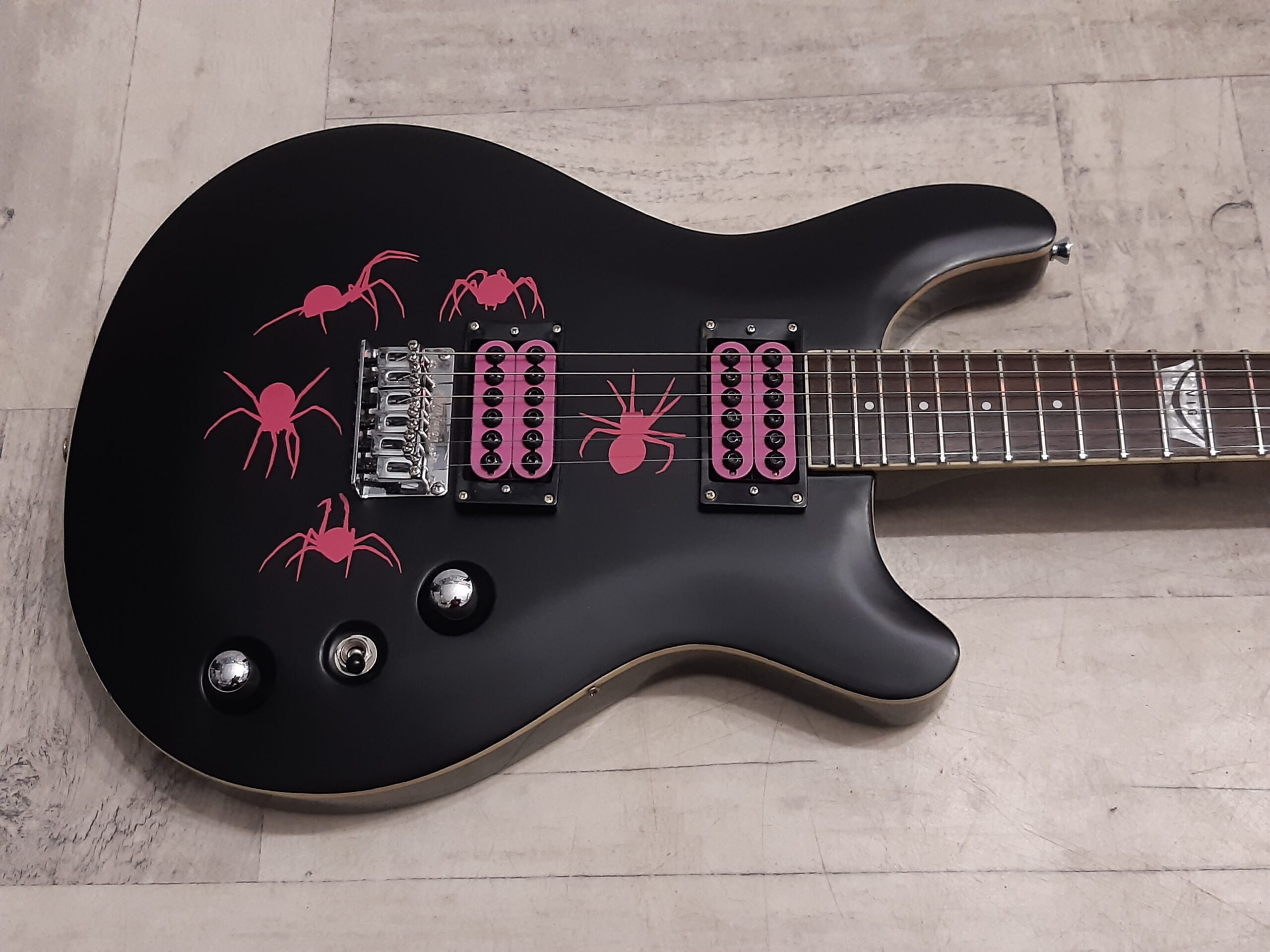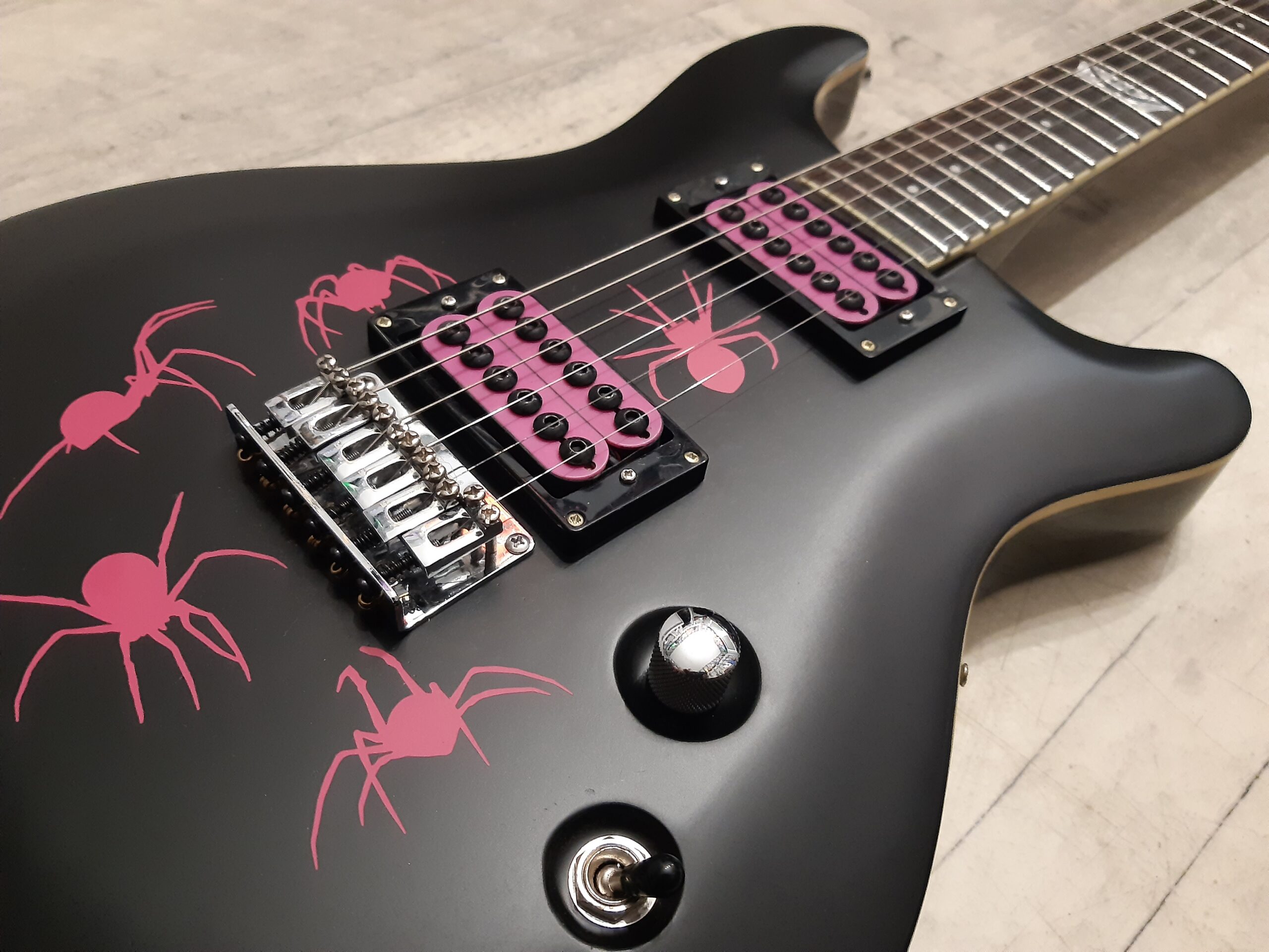 Kolor czarny z różowymi naklejkami pająków (możliwość zdjęcia naklejek) .