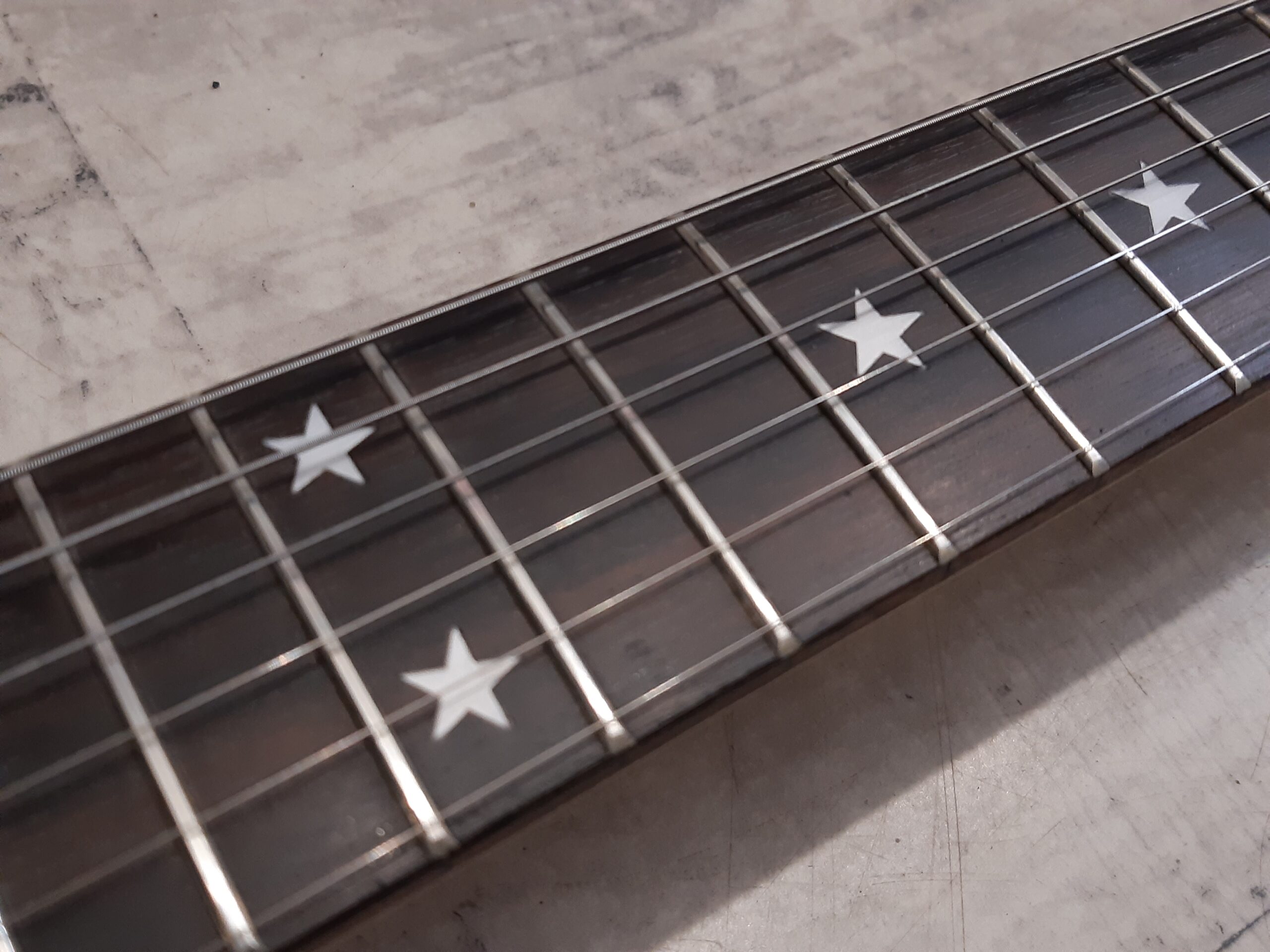 Normalnie stroi , gryf posiada pręt regulacyjny , stały mostek z pełną regulacją i przewlekanymi strunami , metalowe klucze – wszystko jak w większości profesjonalnych gitar !!!